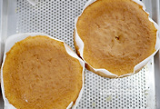 팬닝 한뒤 푸딩컵으로 살짝 눌러 평평하게 만들어 줍니다.