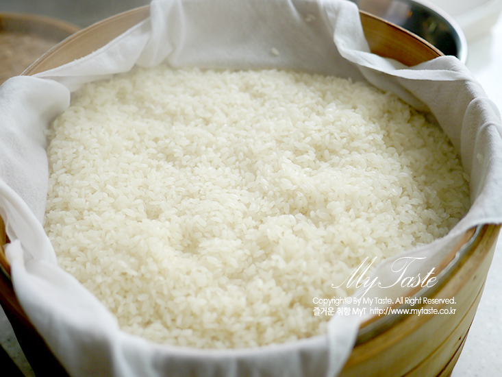 찹쌀을 씻어 2시간 정도 불렸다가 체에 담아 물기를 완전 제거하고 찜솥의 물이 끓으면 찜기에 앉힙니다.